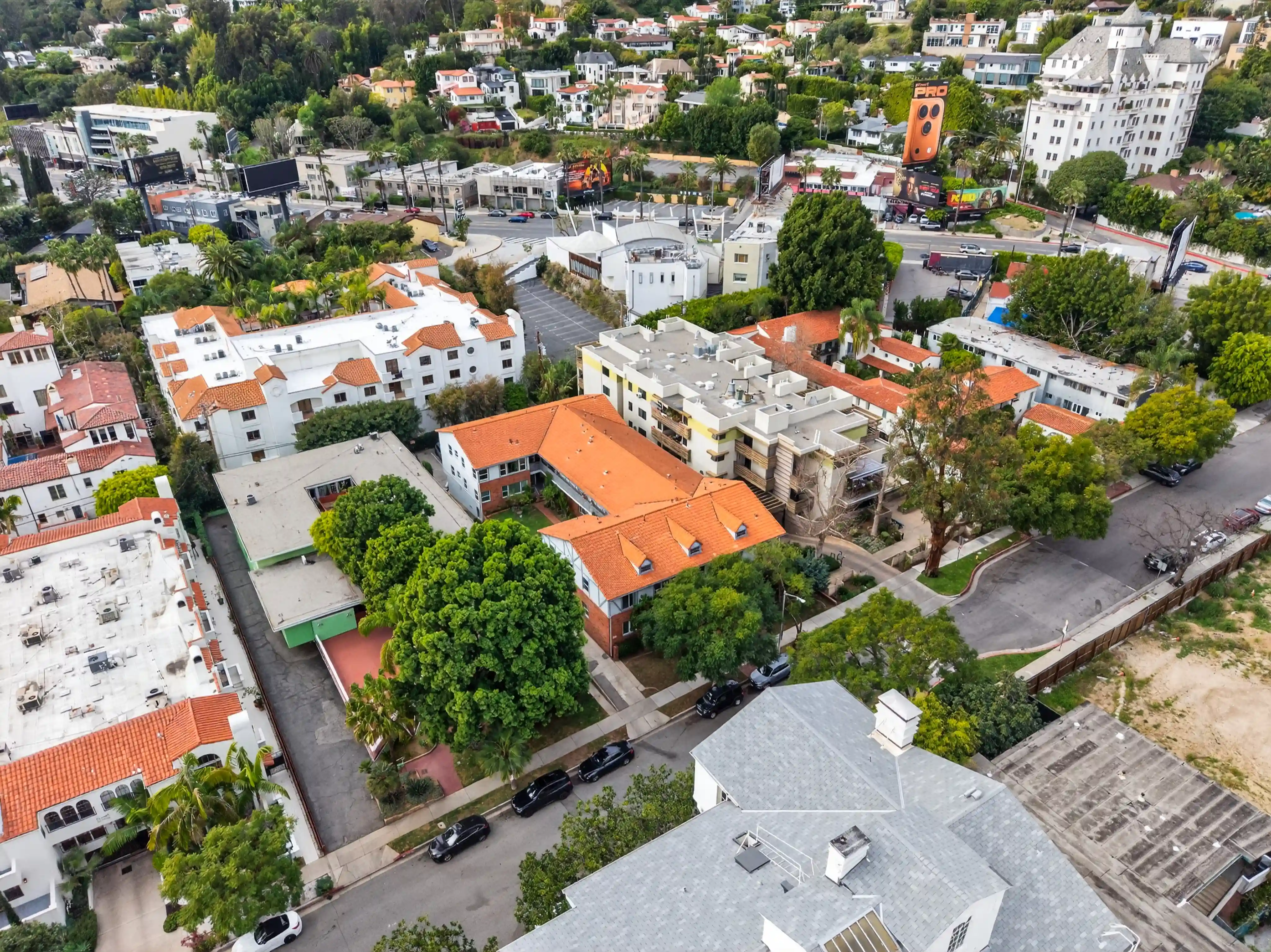 Photo, video, and aerial production for a multifamily property in the Sunset Strip corridor, produced as part of a five-property portfolio offering.