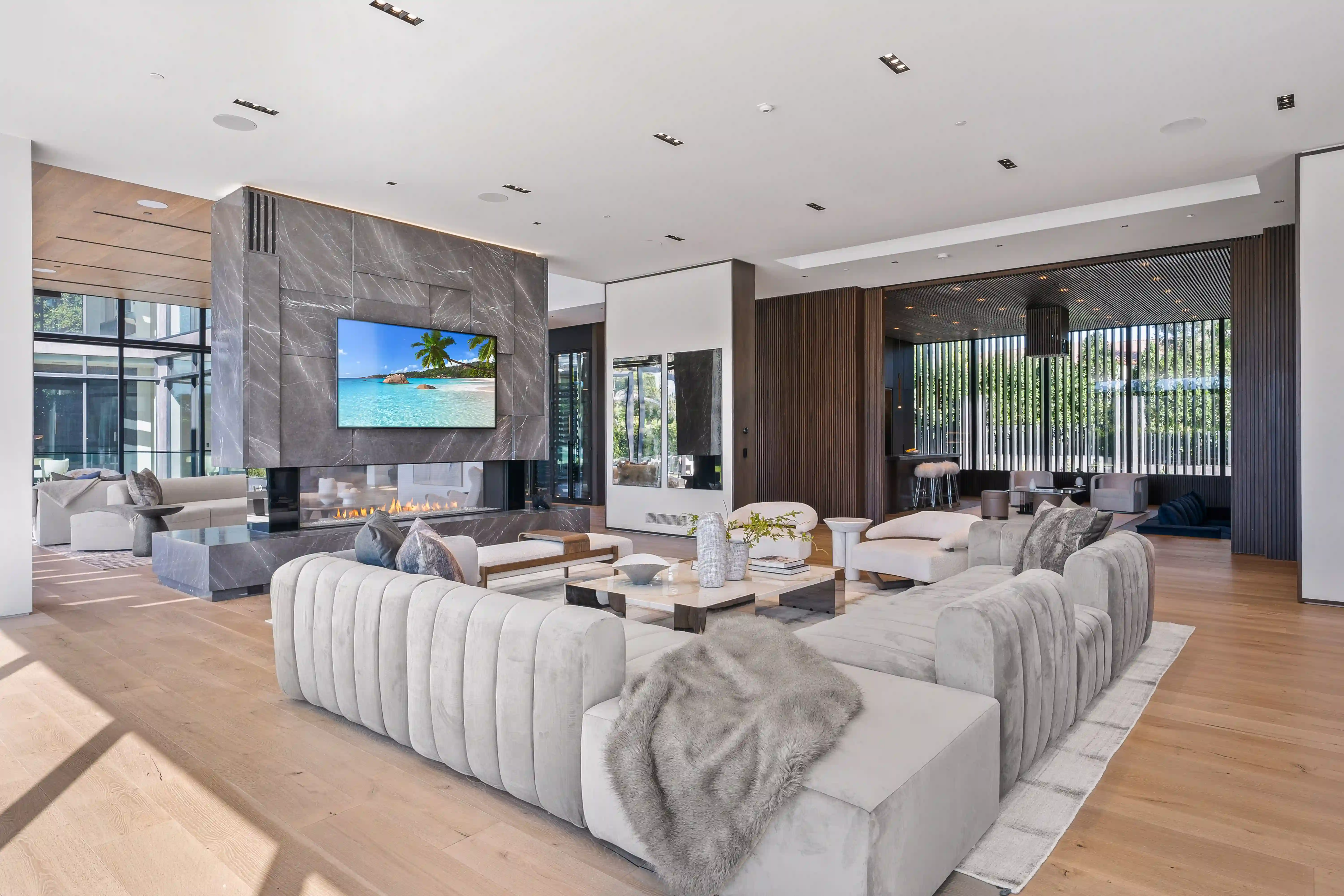 We delivered photos and vertical social media reels capturing the home's clean contemporary lines, open living spaces, chef's kitchen, primary suite, lower-level spa and gym, and outdoor pool area. Coverage emphasized the seamless indoor-outdoor flow and valley views that make the property a standout filming location.
