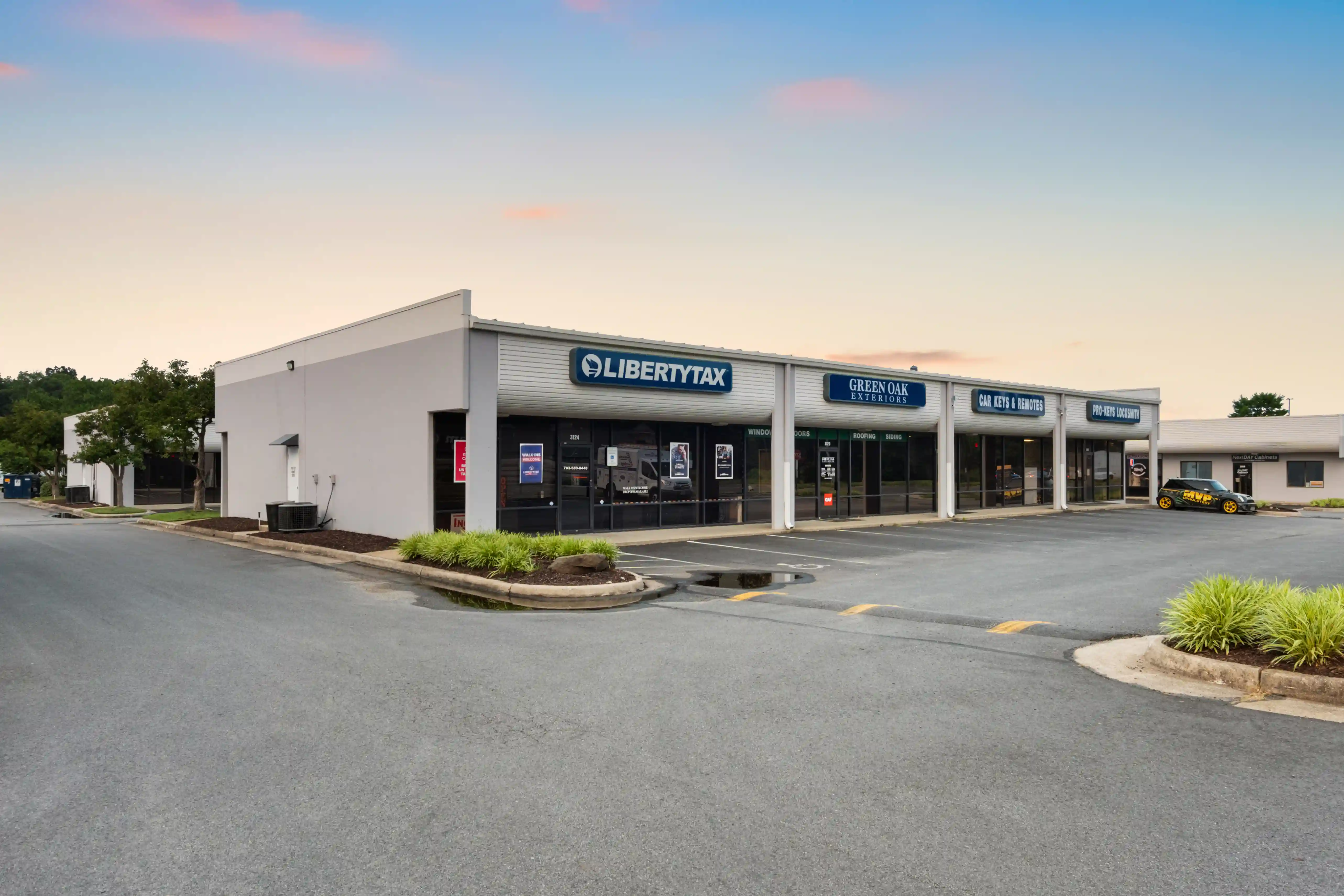 Great Oaks Business Park offers more than 113,000 square feet of commercial real estate at 3091 PS Business Center Drive in Woodbridge, conveniently located at the intersection of Smoketown Road and Prince William Parkway. The park provides retail, office, and warehouse space with flex units featuring private offices, reception areas, and drive-in loading. Situated in one of Northern Virginia's growing suburban corridors with access to I-95 and the broader DC Metro transportation network. We produced ground photography at daytime and twilight with exterior detail shots and raw ground video footage for Link Parks' in-house production team.