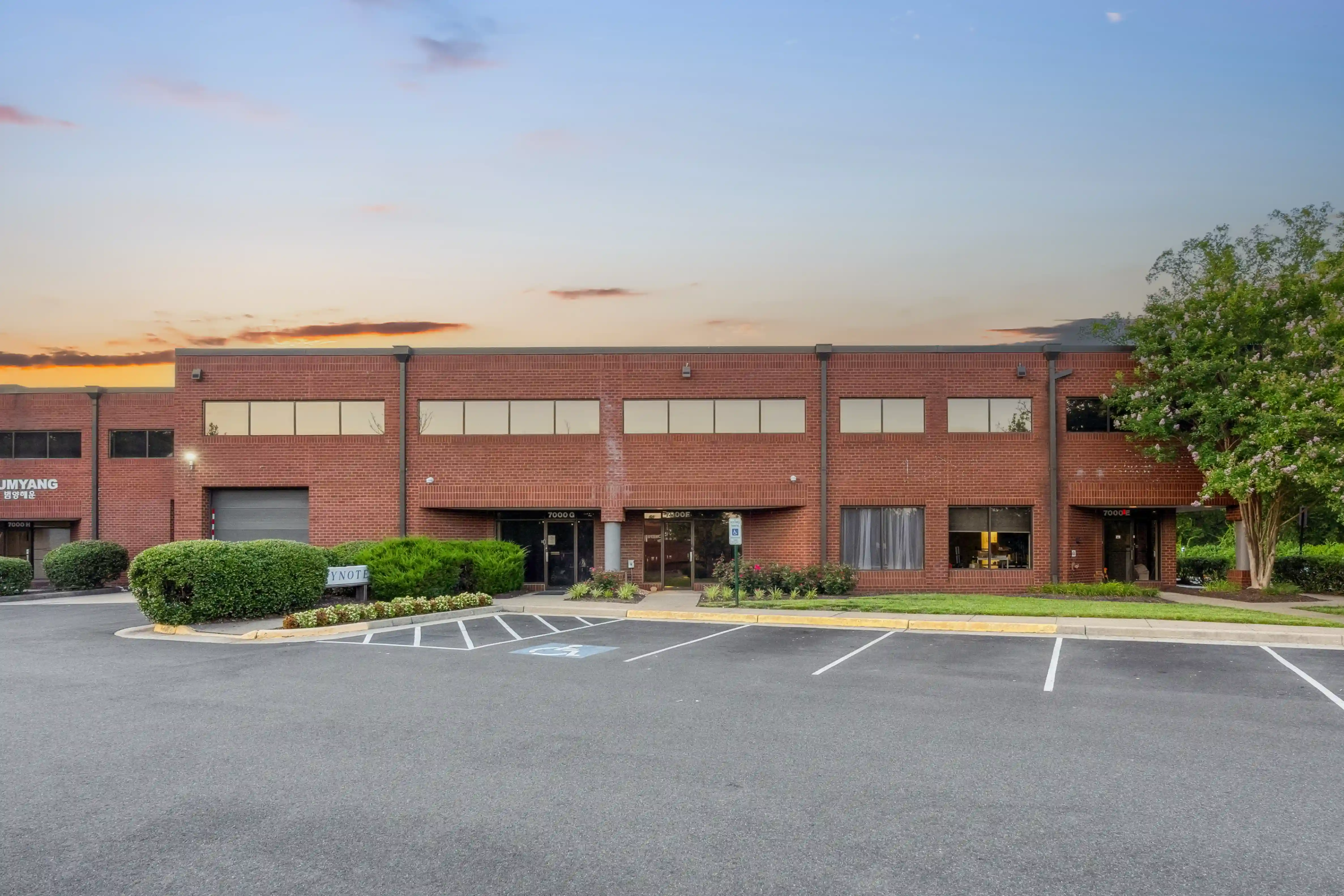 Gunston Industrial Park offers more than 245,000 square feet of commercial real estate across five buildings at 7000 Newington Road in Lorton. The park provides high-bay industrial and warehouse space with flexible suites ranging from 1,800 to 92,000 square feet, 18- to 20-foot ceiling heights, and varying drive-in and dock-high loading configurations. Strategically positioned near I-95, I-495, Route 1, the Fairfax County Parkway, and the Springfield Metro station, with proximity to Reagan National Airport, the Pentagon, Fort Belvoir, and downtown Washington DC. We produced ground photography at daytime and twilight with exterior detail shots and raw ground video footage for Link Parks' in-house production team.