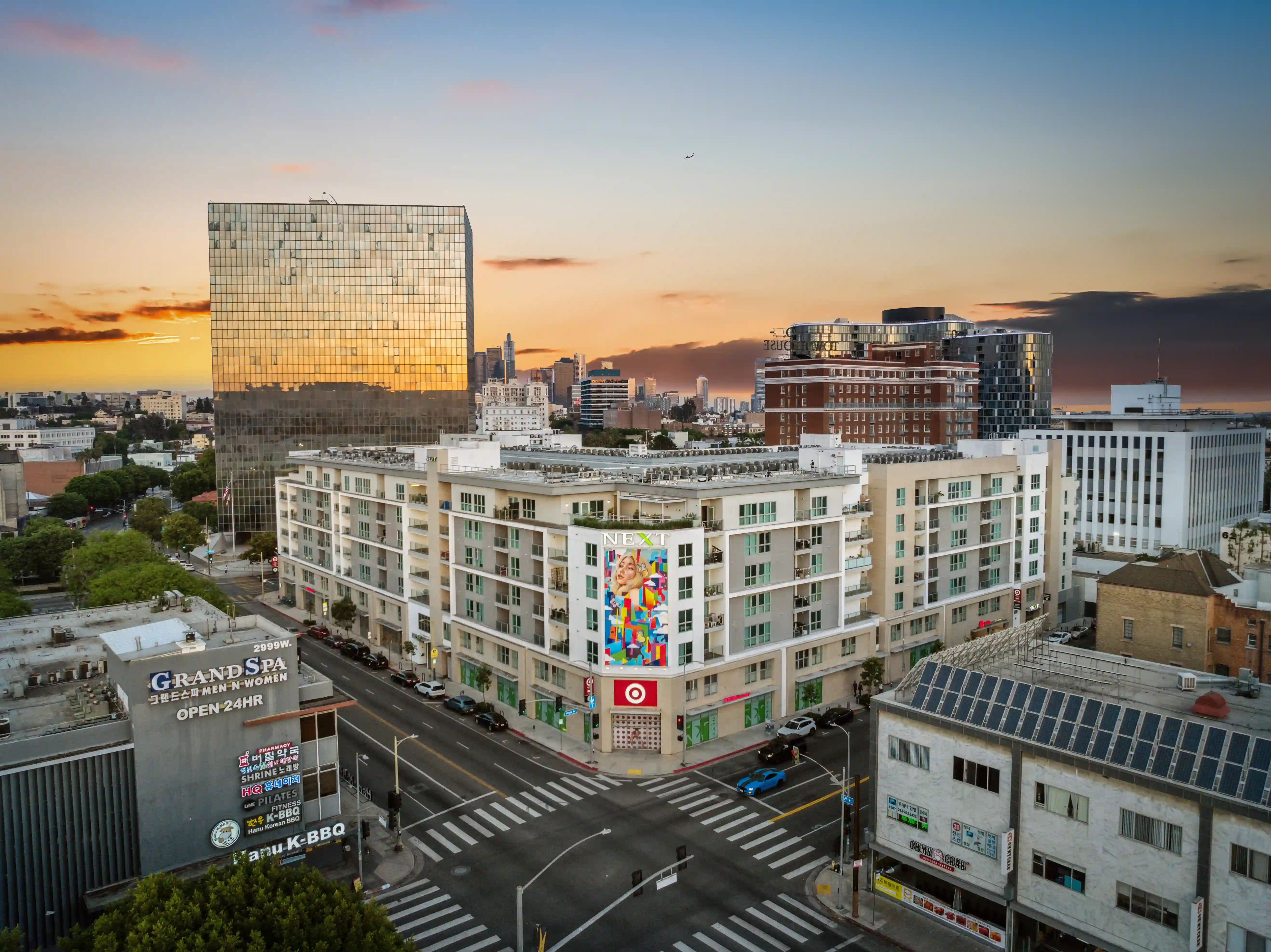 Next on Sixth Apartments is located at 620 S Virgil Avenue in Koreatown, known for its colorful murals and modern design. The property offers studio, one-, and two-bedroom floor plans with hard surface flooring, stainless steel appliances, quartz counters, and floor-to-ceiling windows. Koreatown is one of LA's most energetic neighborhoods, packed with dining, entertainment, and shopping, with the Wilshire/Vermont Metro just a few blocks away for quick access to Downtown and North Hollywood. We produced video and drone content capturing the building and its signature murals, along with minimal exterior ground photography, delivering a polished content set for leasing and digital marketing.