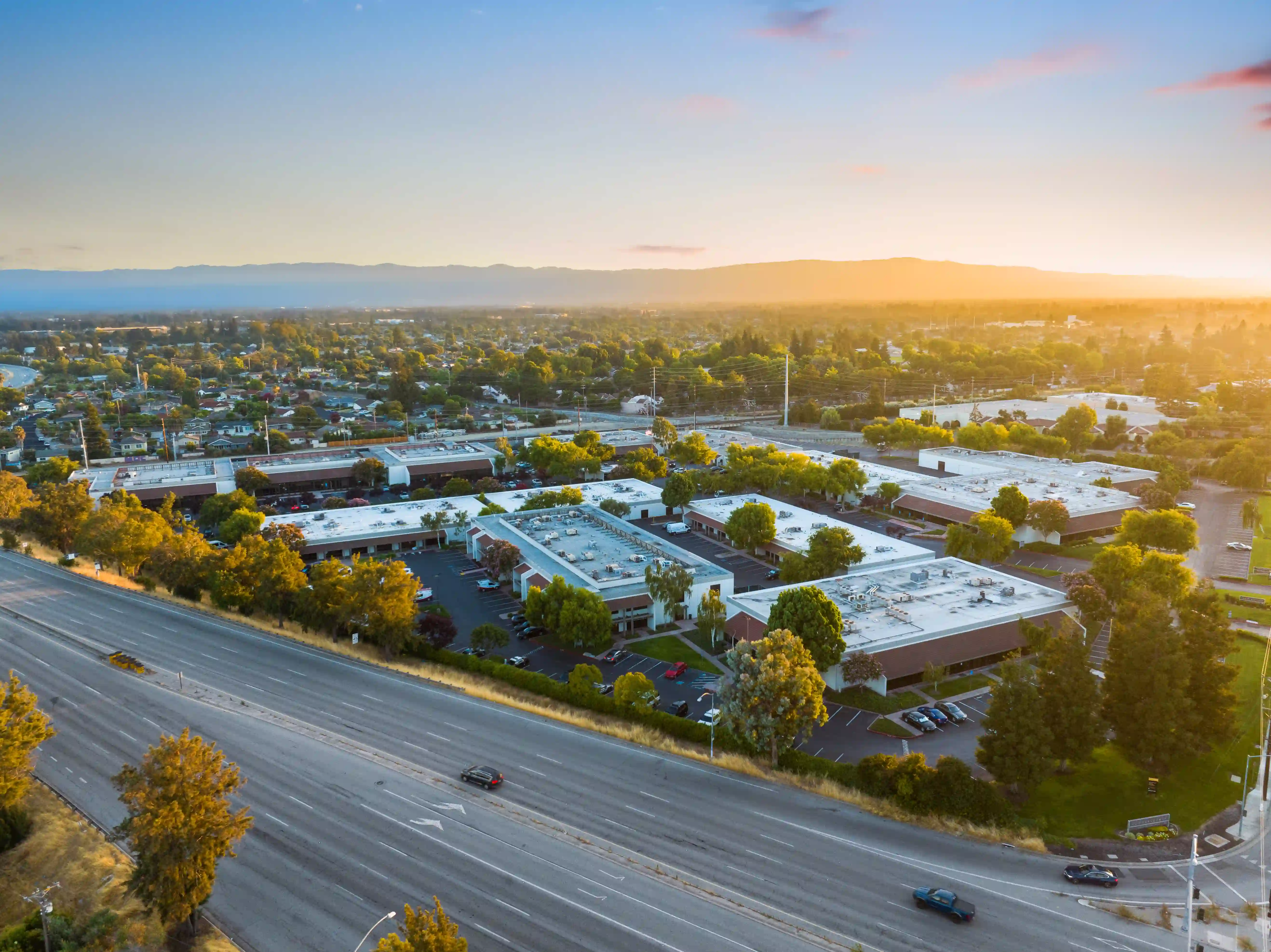 Santa Clara Commerce Park is a 251,413-square-foot business park across 11 buildings at 2300-2398 Walsh Avenue in Santa Clara. The park offers a blend of flex, warehouse, R&D, and office space with suites ranging from 140 to 14,000 square feet, a 3.3 per 1,000 SF parking ratio, and on-site amenities including a deli and fitness facility. Located on the high-visibility corner of San Tomas Expressway and Walsh Avenue with over 70,000 cars daily, the park sits across from the Nvidia worldwide headquarters campus with easy access to I-880, US-101, and San Jose International Airport. We produced ground photography at daytime and twilight with exterior detail shots, drone photo and video at daytime, sunset, and twilight showcasing the full park and individual buildings, and raw ground video footage for Link Parks' in-house production team.