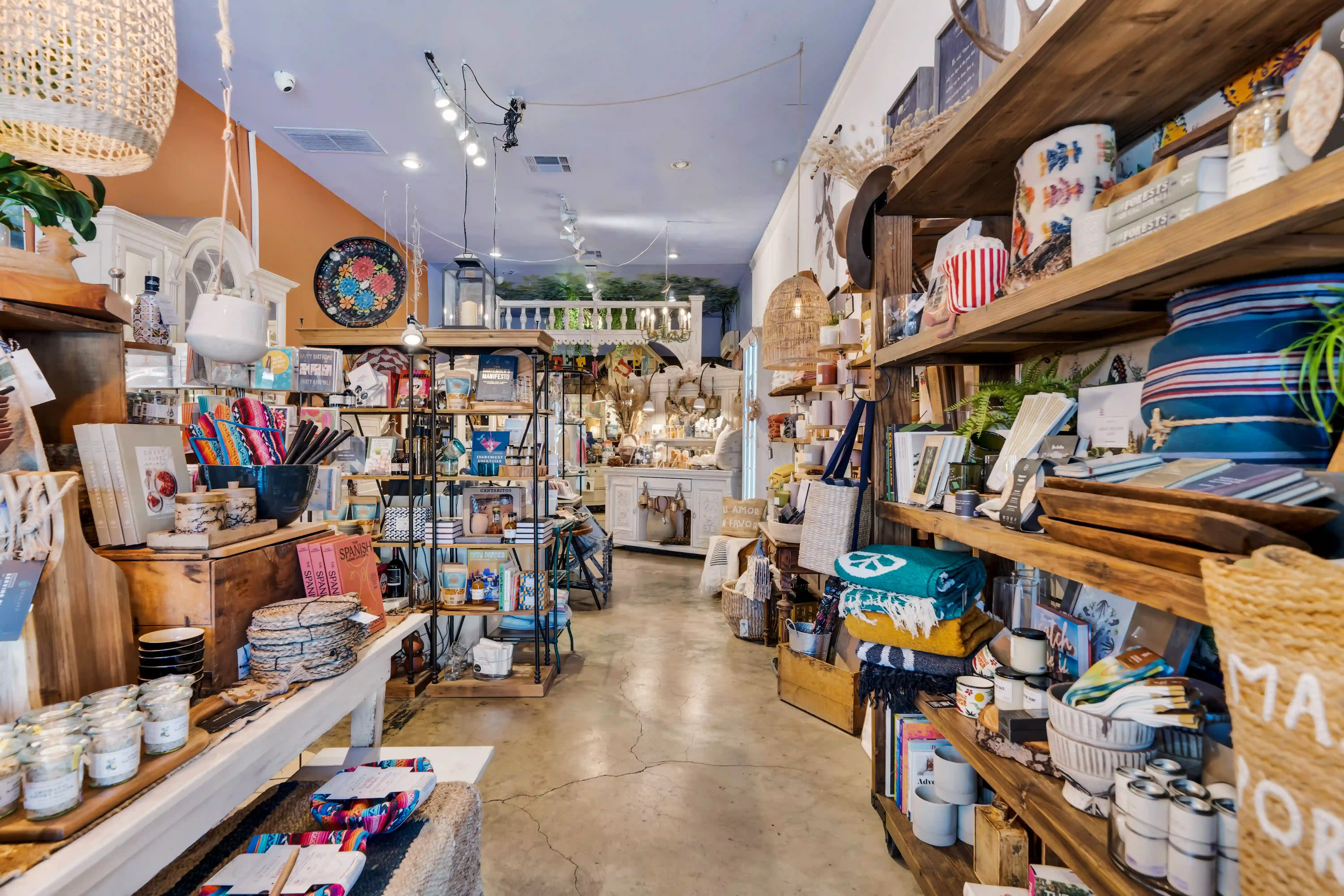 We captured the shop's densely curated displays and eclectic product mix—wide shots of the interior, detail images of vignettes and merchandise, and the outdoor patio area. Natural light and warm tones demonstrated the space's visual versatility for different production needs.