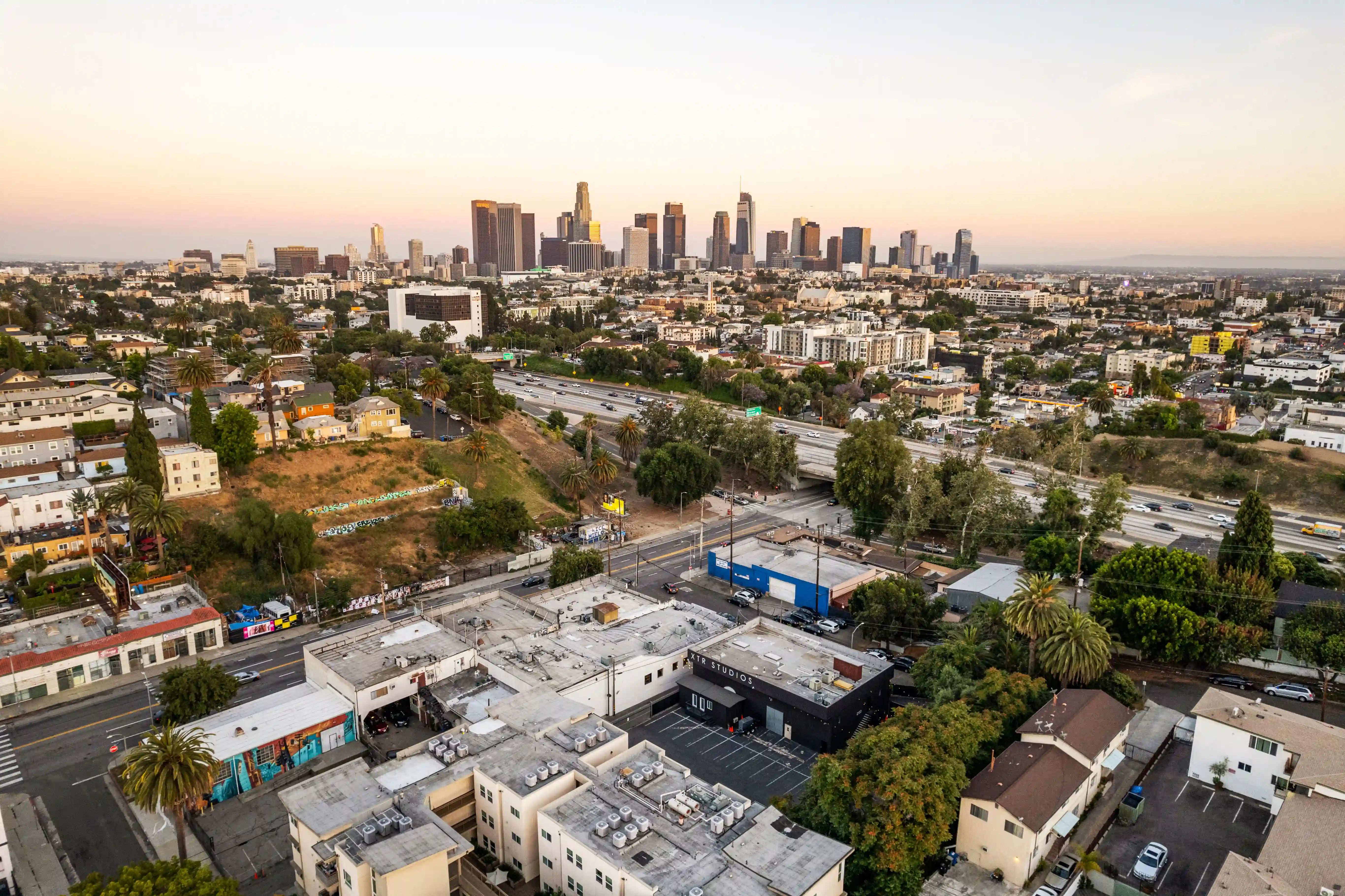 We captured the full scope of the facility—drone aerials of the Echo Park campus, interior coverage of the soundstage and virtual production setup, control rooms, lounge areas, and brick-and-wood office spaces. Lighting balanced the industrial architecture with the warm, curated design details throughout.